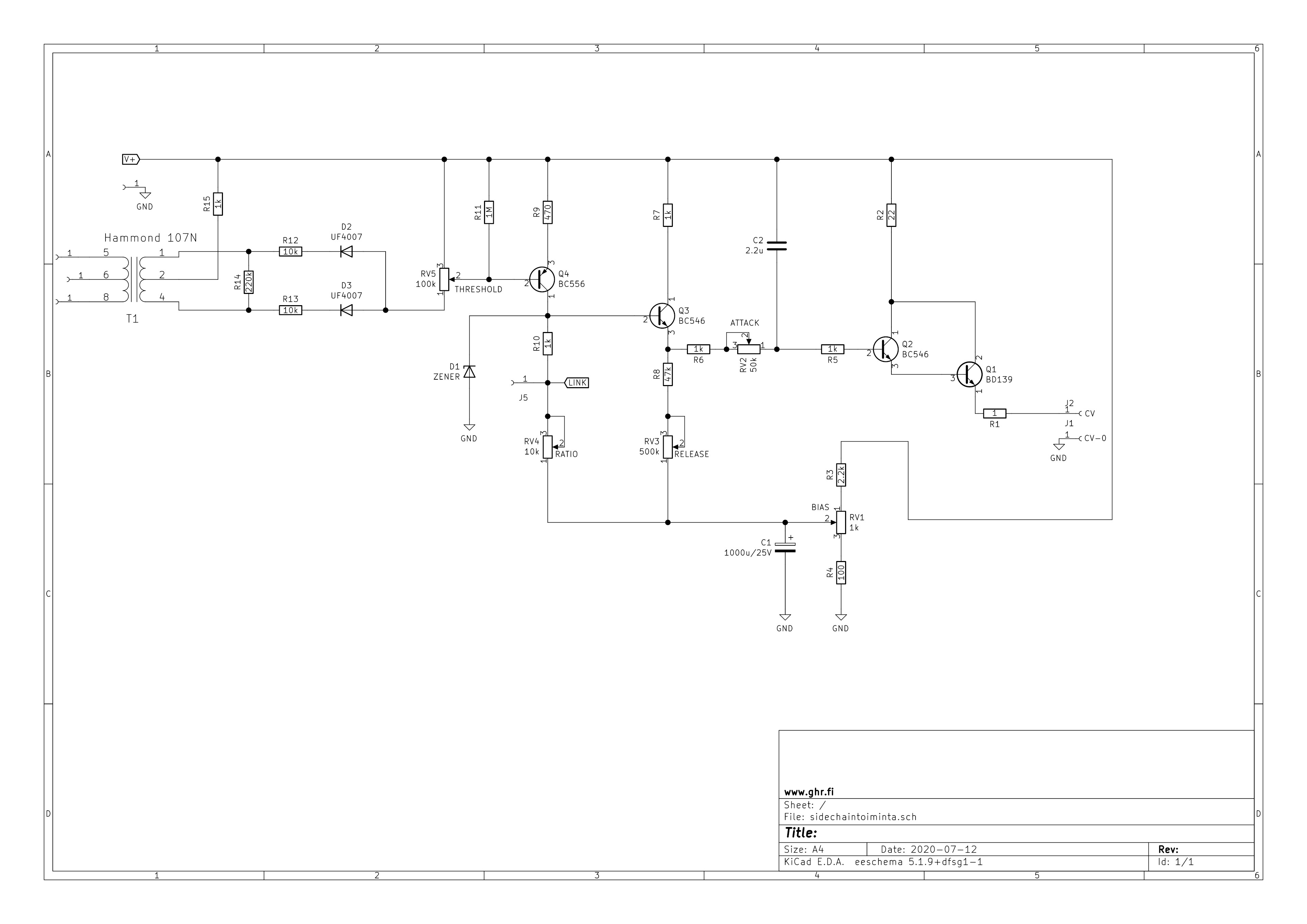 Tube compressors are generally expensive. The high price is largely due to the expensive audio transformers. A mono compressor has 2 or 3 audio transformers, and a stereo compressor has 4 or 6 transformers. However, the number of transformers can be reduced if semiconductors are used in the control circuit and in some of the amplifier stages. Traditionally, the input to the compression amplifier stage has a transformer. The input transformer provides a symmetrical input signal to the compression stage and the impedance for the control signal is practically infinite. The input transformer can be eliminated if the control voltage is fed to the tubes' cathodes. When fed to the cathodes, the impedance for the control voltage is low, so the control amplifier must be implemented with semiconductors.