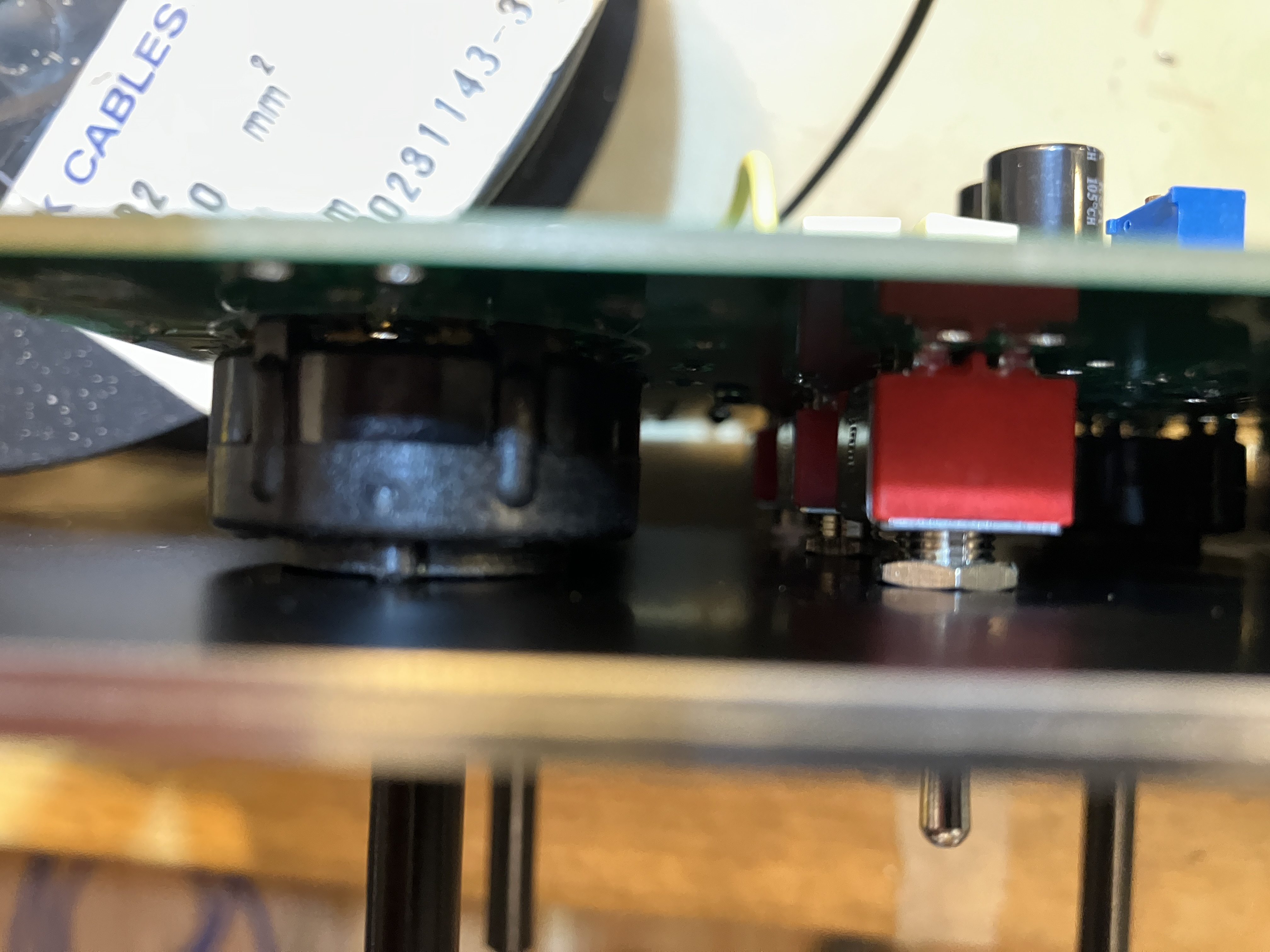 Use plastic standoffs under PS board.